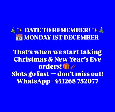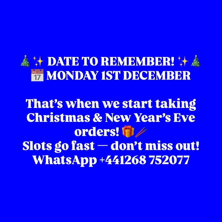 Message your order and the time you would like the delivery/collection